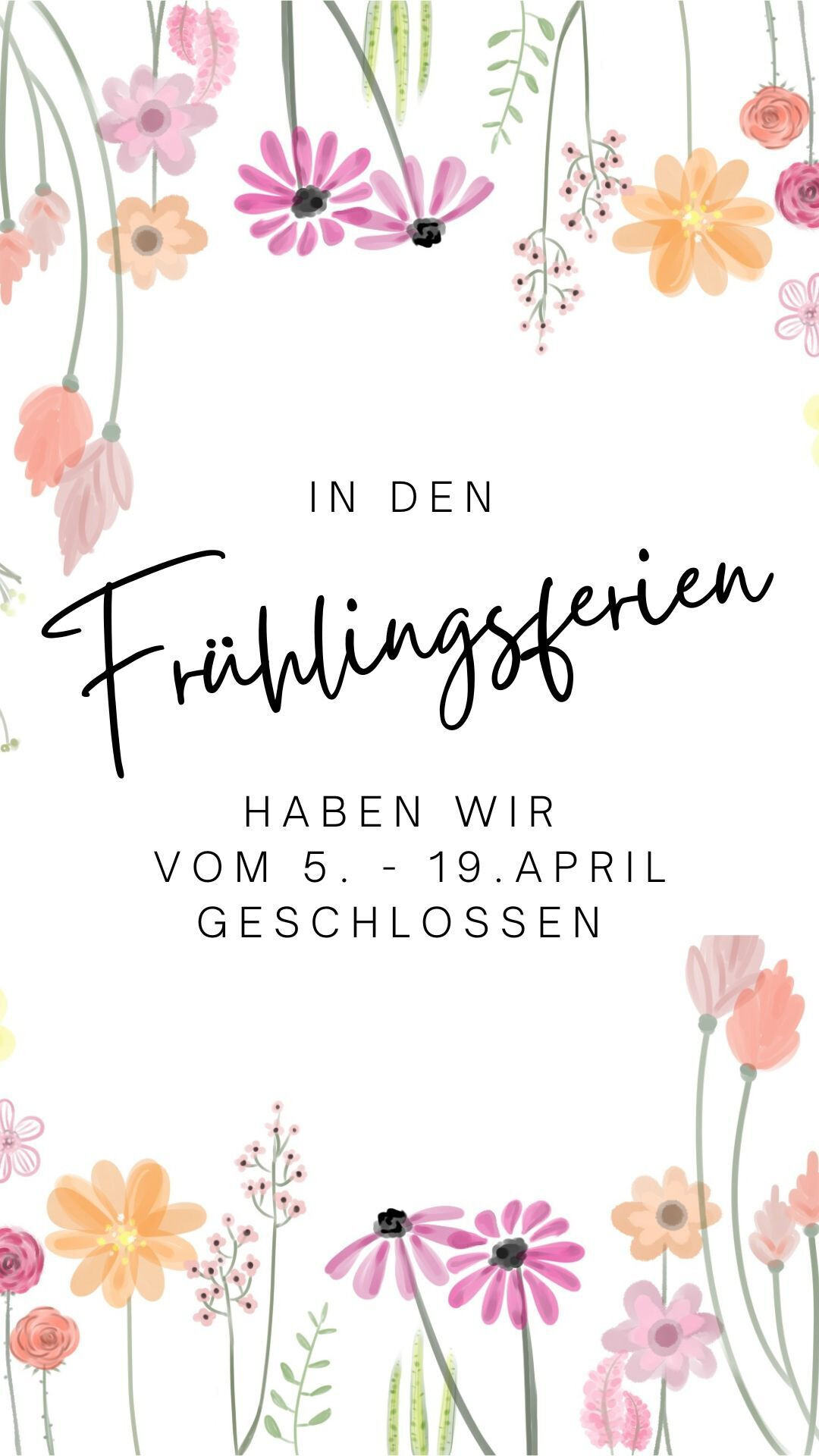 In den Frühlingsferien haben wir vom 5. - 19. April geschlossen